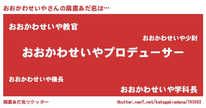 | 意味不明あだ名 | 『住所不定無職おおかわせいや(91歳)』 |
