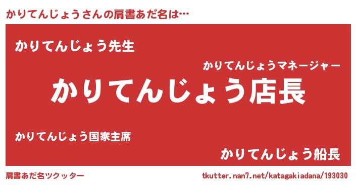| 男性向けラノベタイトル風あだ名 | 『かりてんじょうの憂鬱』 |