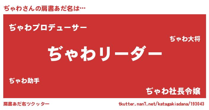 | ヒーロー風カッコイイあだ名 | 『幻影騎士ヂャ』『スーパーヂャワ』 |