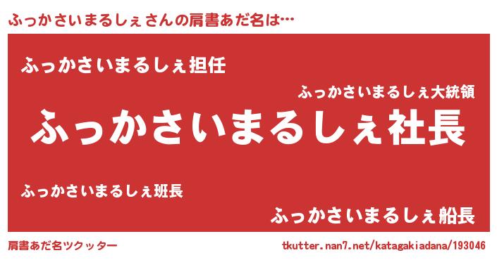 | 恥ずかしいあだ名 | 『プリティーふっかさいまるしぇ』 |