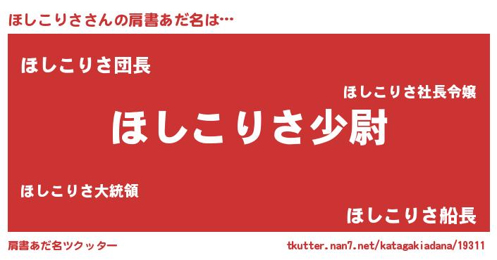 | ヒーロー風カッコイイあだ名 | 『幻影騎士ホシ』『スーパーホシコリサ』 |