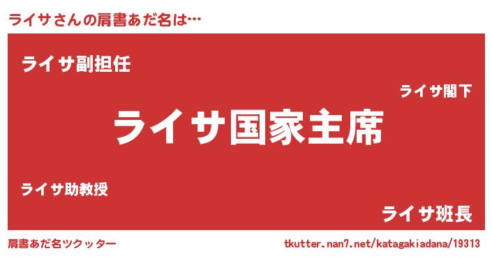 | 欧米人風あだ名 | 『ライサクリステル』『ウサインライサ』 |