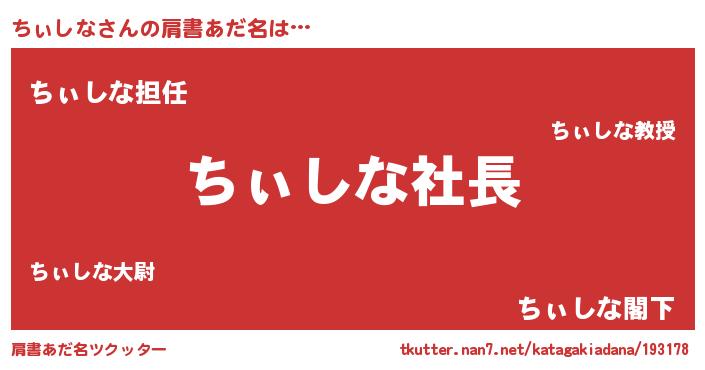 | ヘコむあだ名 | 『ちぃにー』『ちぃしな(苦笑)』 |