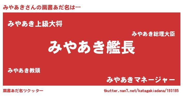 | 欧米人風あだ名 | 『みやあき・ステッグマイヤー』 |