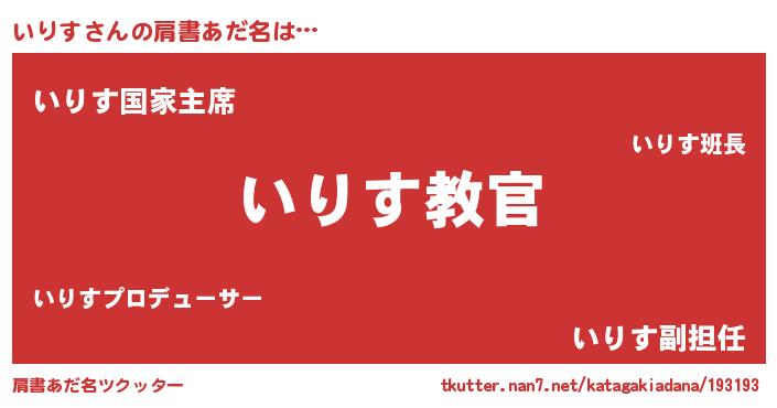 | 男性向けラノベタイトル風あだ名 | 『魔弾の王といりす』 |