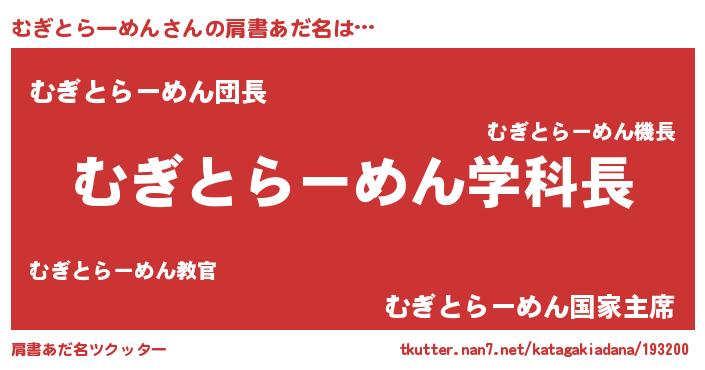| ヒーロー風カッコイイあだ名 | 『天空の使者むぎとらーめん』 |