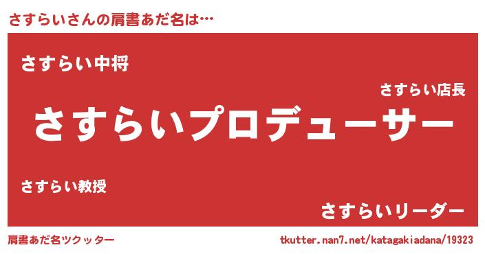 | 男性向けラノベタイトル風あだ名 | 『はたらくさすらいさま!』 |