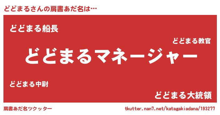 | 男性向けラノベタイトル風あだ名 | 『どどまるに滅ぼされるだけの簡単なお仕事です』 |