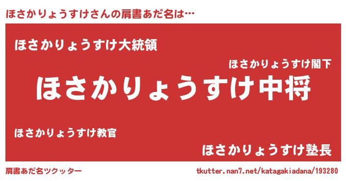| ポケモン風あだ名 | 『ホサキング』『ホサカダネ』 |