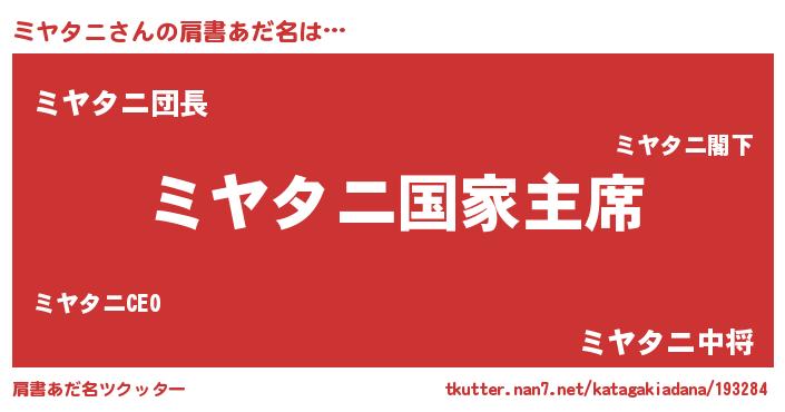 | 意味不明あだ名 | 『ミヤタニフォーエバー』『自称ミヤタニ』 |