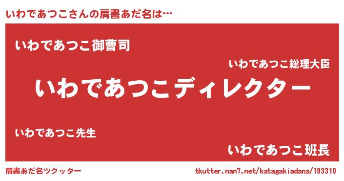 | 男性向けラノベタイトル風あだ名 | 『はたらくいわであつこさま!』 |