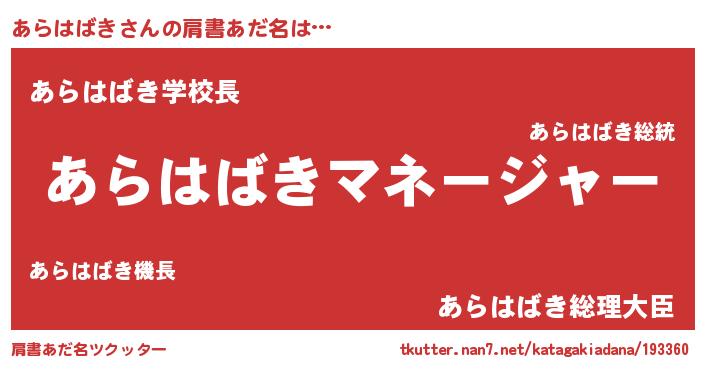 | 欧米人風あだ名 | 『アンジェラ・あらはばき』 |