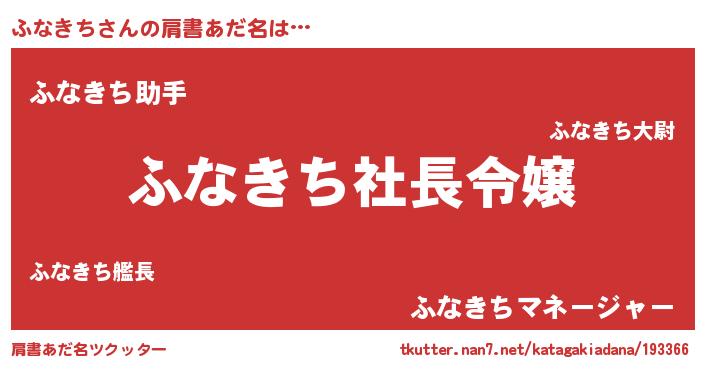 | 男性向けラノベタイトル風あだ名 | 『ふなきちの憂鬱』『フナキチスレイヤー』 |