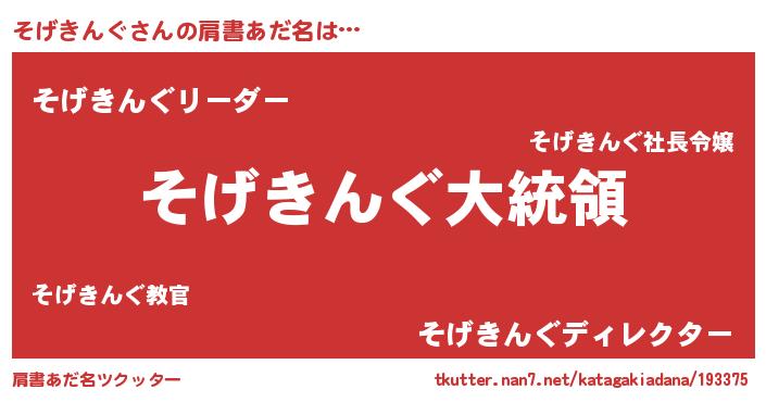 | ファンタジー風あだ名 | 『エターナルソゲキングー』『ソゲフェル』 |