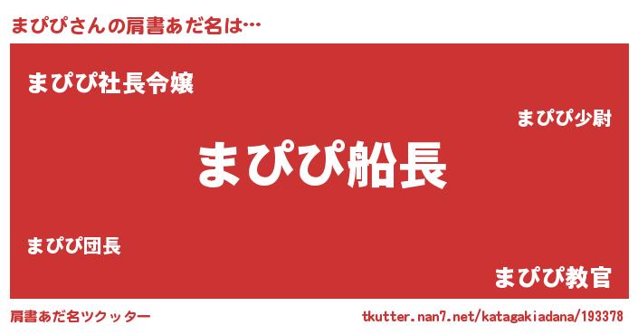 | ヘコむあだ名 | 『まぴふぇ~』『まぴっぺ』 |