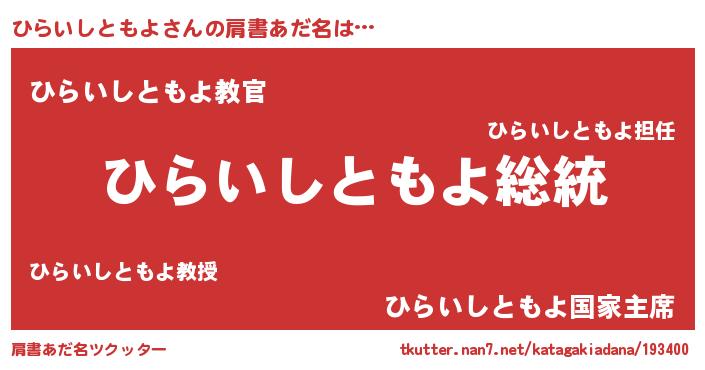 | 意味不明あだ名 | 『自称ひらいしともよ』 |