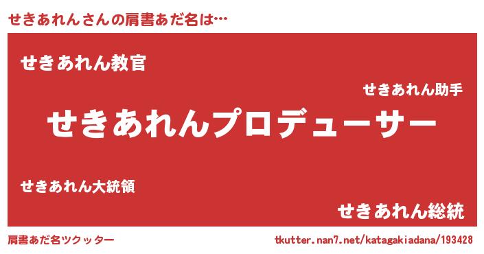 | 男性向けラノベタイトル風あだ名 | 『せきあれんに滅ぼされるだけの簡単なお仕事です』 |