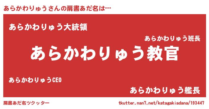 | 男性向けラノベタイトル風あだ名 | 『この素晴らしい世界にあらかわりゅうを!』 |