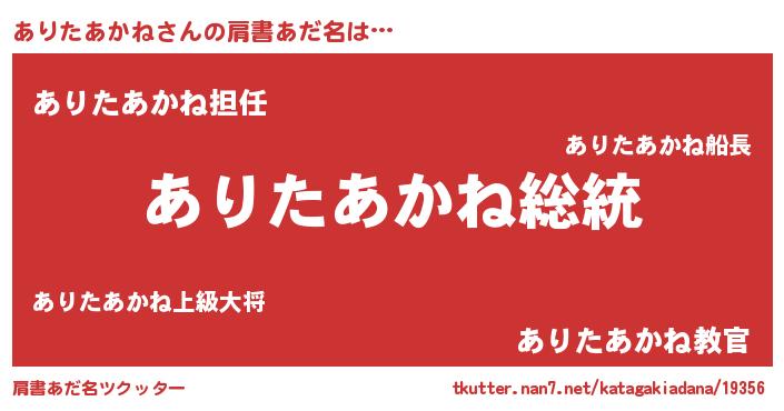 | 意味不明あだ名 | 『自称ありたあかね』 |