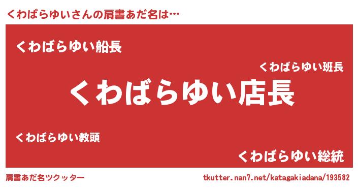 | 胡散臭い通販商品みたいなあだ名 | 『モテモテ間違いなし水晶球…その名も「くわばらゆい」』 |