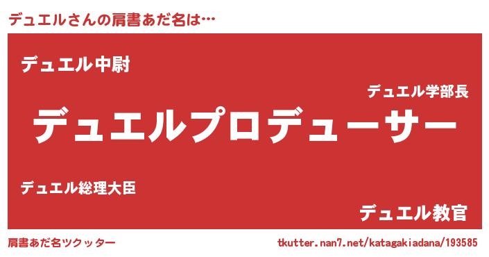 | 男性向けラノベタイトル風あだ名 | 『デュエルに滅ぼされるだけの簡単なお仕事です』 |