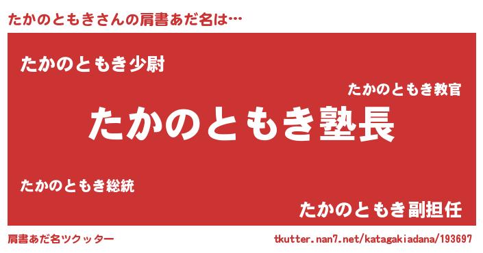 | ヘコむあだ名 | 『たかっ子』『たかのともき(笑)』 |