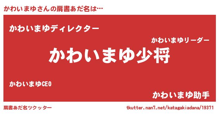 | 料理風あだ名 | 『かわいまゆごはん』 |