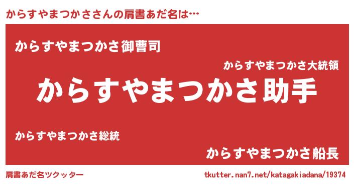 | 男性向けラノベタイトル風あだ名 | 『ノーゲーム・ノーカラスヤマツカサ』 |
