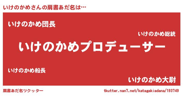 | ヒーロー風カッコイイあだ名 | 『幻影騎士イケ』『超時空戦士イケノカメ』 |