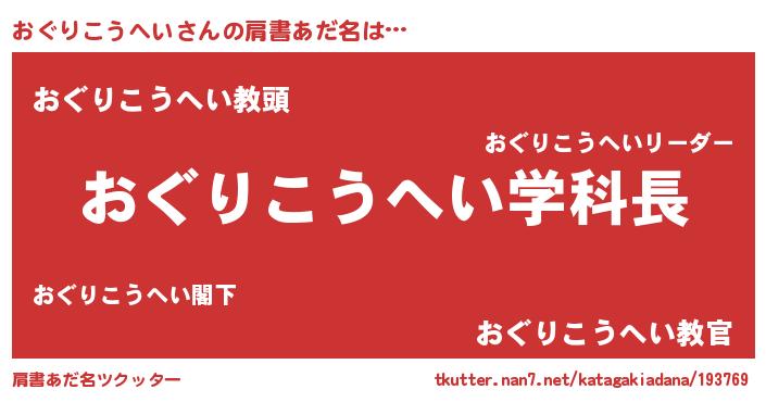 | 男性向けラノベタイトル風あだ名 | 『おまえをオタクにしてやるから、俺をおぐりこうへいにしてくれ! 』 |