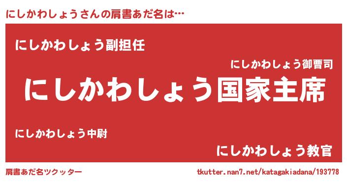 | 意味不明あだ名 | 『にしかわしょうフォーエバー』 |