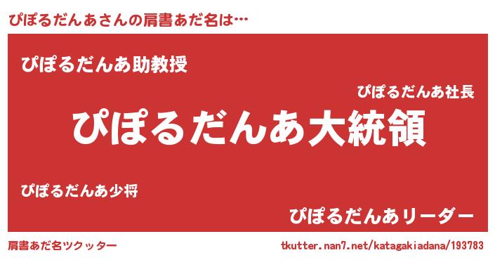 | 男性向けラノベタイトル風あだ名 | 『やはりぴぽるだんあの青春ラブコメはまちがっている 』 |