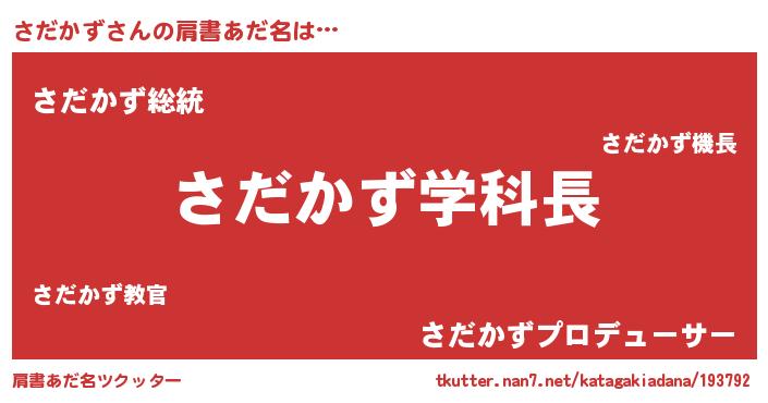 | 男性向けラノベタイトル風あだ名 | 『おまえをオタクにしてやるから、俺をさだかずにしてくれ! 』 |