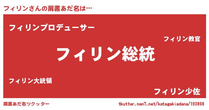 | 意味不明あだ名 | 『自称フィリン』『しいたけ科フィリン属』 |