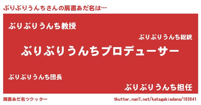| ヘコむあだ名 | 『ぶりぶりうんち(遠い目)』『ぶりお』 |