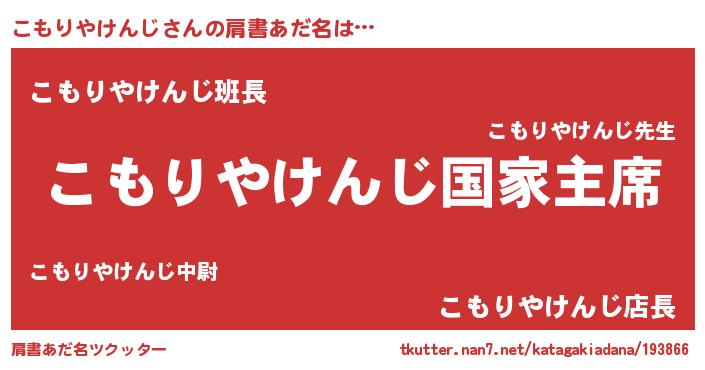 | ファンタジー風あだ名 | 『エターナルコモリヤケンジー』 |
