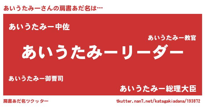 | 男性向けラノベタイトル風あだ名 | 『あいうたみーの嫁は女の子じゃないと思った?』 |