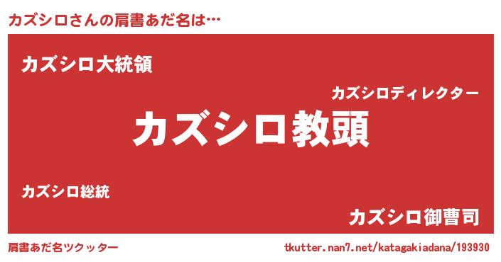 | ヘコむあだ名 | 『カズシロ(笑)』『酢こんぶ』 |