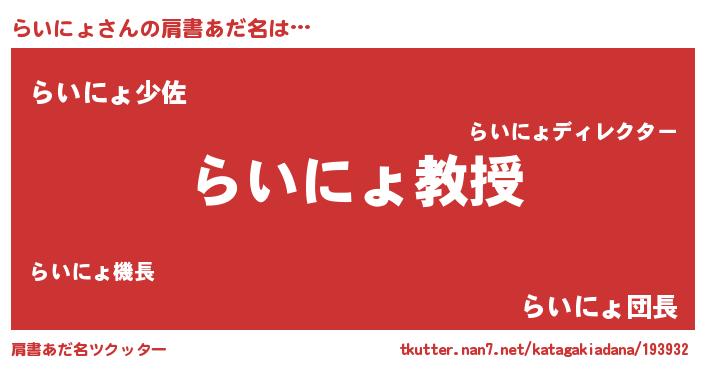 | 料理風あだ名 | 『らいにょのトマト煮』『らいにょごはん』 |