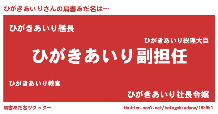 | ヘコむあだ名 | 『ひがきあいり(遠い目)』『ひがにゅー』 |