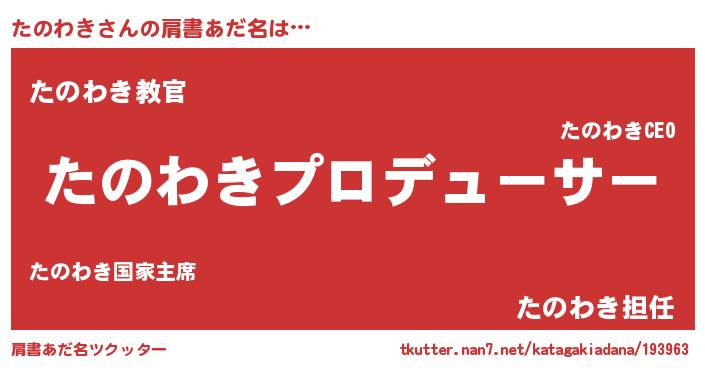 | ヒーロー風カッコイイあだ名 | 『仮面タノダー』『ネオタノワキ』 |