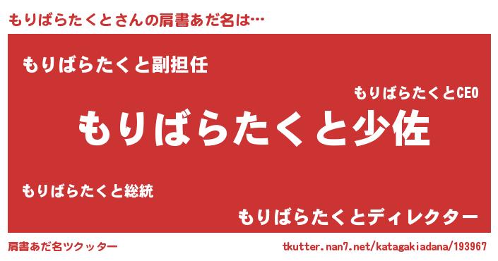 | ヘコむあだ名 | 『もりばらたくと(小並感)』『もりっふぃ~』 |