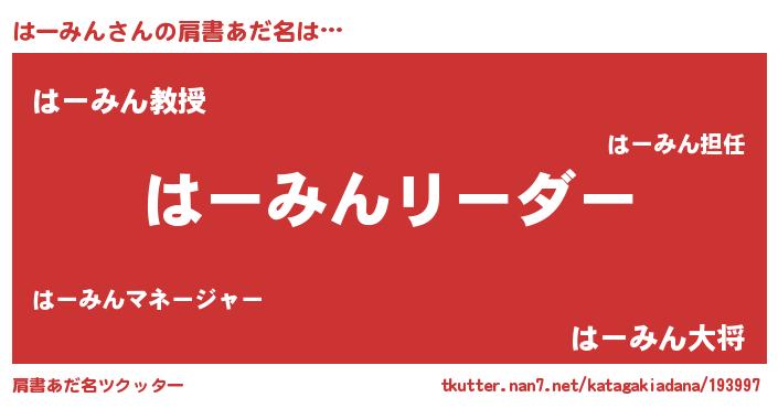 | 意味不明あだ名 | 『とにかく怪しいはーみん』 |