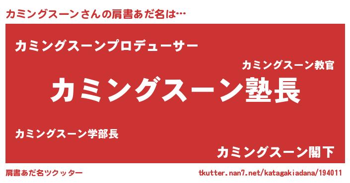 | 女子向けラノベタイトル風あだ名 | 『カミングスーンは平凡を望む』 |