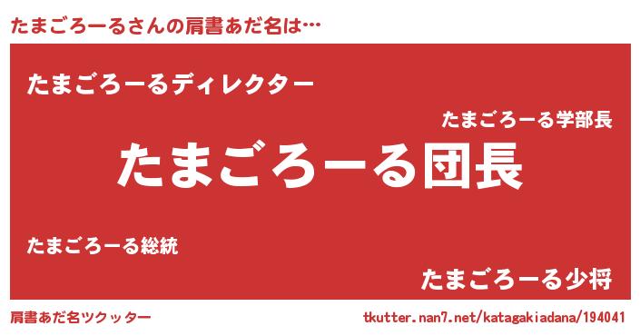 | ヒーロー風カッコイイあだ名 | 『魔戒騎士タマ』『最強戦士タマゴロール』 |