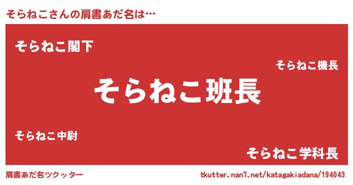 | 意味不明あだ名 | 『とにかく怪しいそらねこ』 |