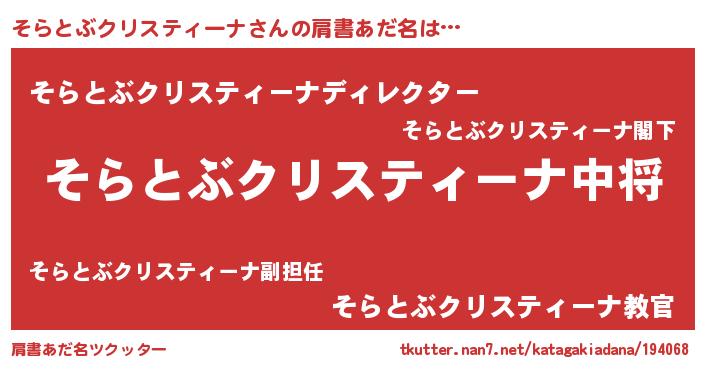 | ヘコむあだ名 | 『そらとぶクリスティーナ(震え声)』 |