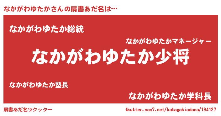 | 料理風あだ名 | 『なかがわゆたかごはん』 |