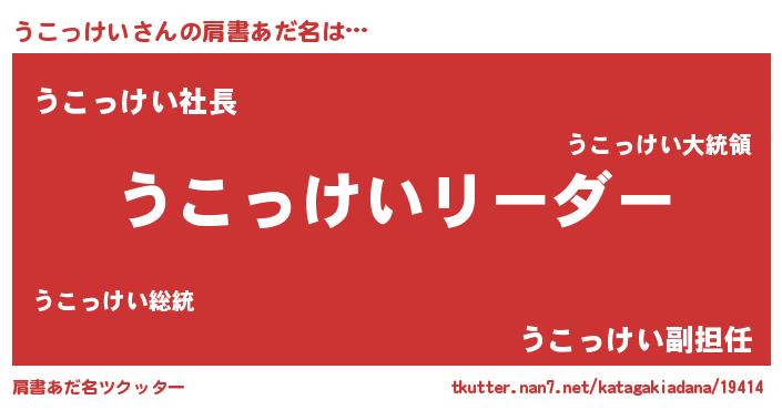 | ヘコむあだ名 | 『うこぷりん』『うこにー』 |