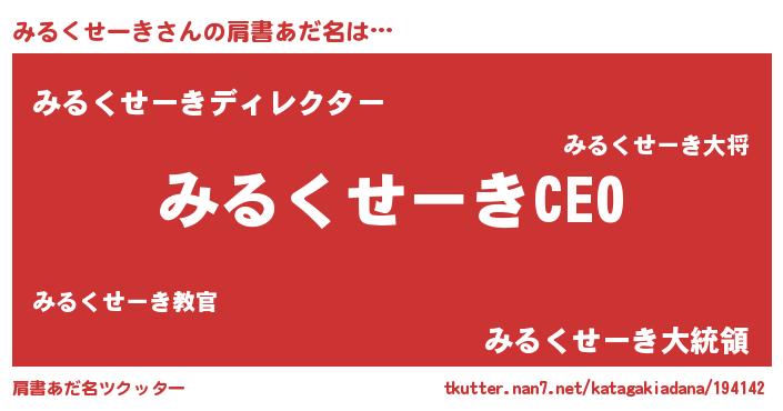 | 男性向けラノベタイトル風あだ名 | 『みるくせーきの憂鬱』 |